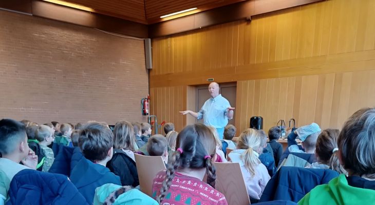 Wir danken Herrn Devise für seine Darbietungen, die den Kindern bestimmt noch lange in Erinnerung bleiben werden. Wer die beiden Bücher gerne komplett lesen möchte, kann sie sich bald auch in unserer Bücherei ausleihen. :-)