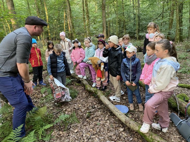 Zwei Tage später waren wir zum "Lernen durch Abenteuer" im Wald hinter der Schule. Fulpi der Fuchs war natürlich auch dabei! Nach einem kurzen Einführungsspiel durften wir uns in Gruppen aufteilen und aus ganz vielen verschiedenen Naturmaterialien, die der Wald uns anbot, ein Haus für Fulpi bauen. Wir haben gut zusammen gearbeitet und so entstanden ganz verschiedene Behausungen. Schade, dass die Zeit so schnell vorbei war!