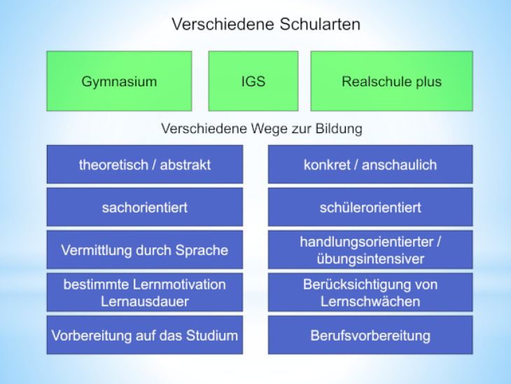 Für Eltern der Viert- und Drittklässler gibt es nun eine Präsentation mit Informationen über die verschiedenen Schulabschlüsse und Schularten ab Klasse 5, deren Merkmale sowie wichtige Gedanken rund um die Empfehlung und Schulwahl.