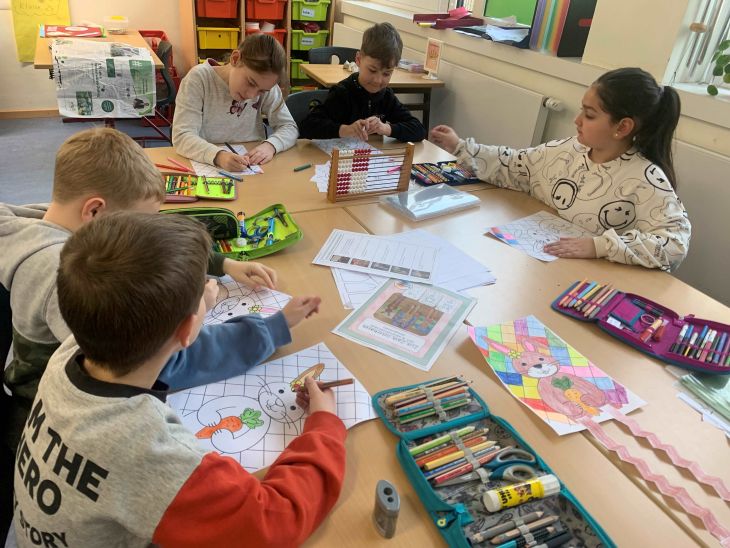 Am Mittwoch, 20.3.2024 verwandelte sich unser Klassenraum in eine Osterwerkstatt. Es wurde gebastelt, Osterkarten bestickt, Gipsbilder bemalt und in der Küche fleißig gebacken. Ein herzliches Dankeschön an die Mütter, die uns geholfen haben. Es hat allen viel Spaß gemacht.