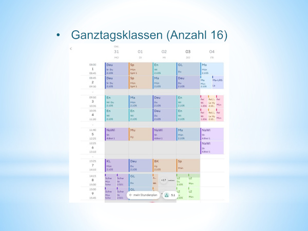 1. Abweichungen von der Stundentafel, soweit sie in das Ermessen der einzelnen Schule gestellt sind,