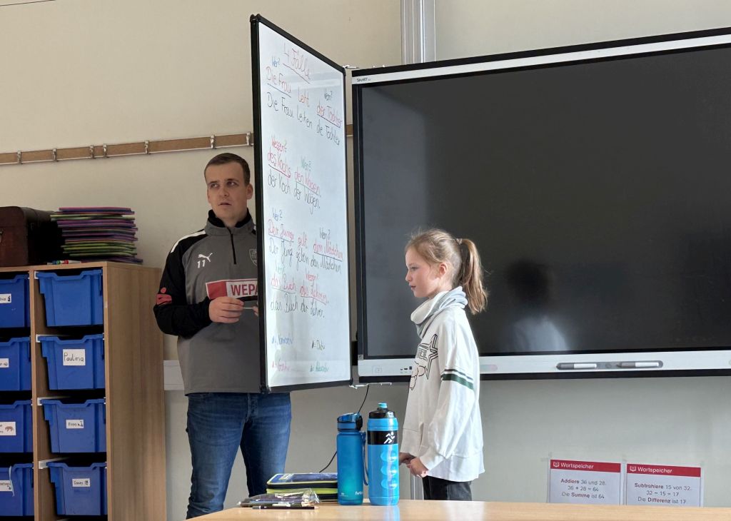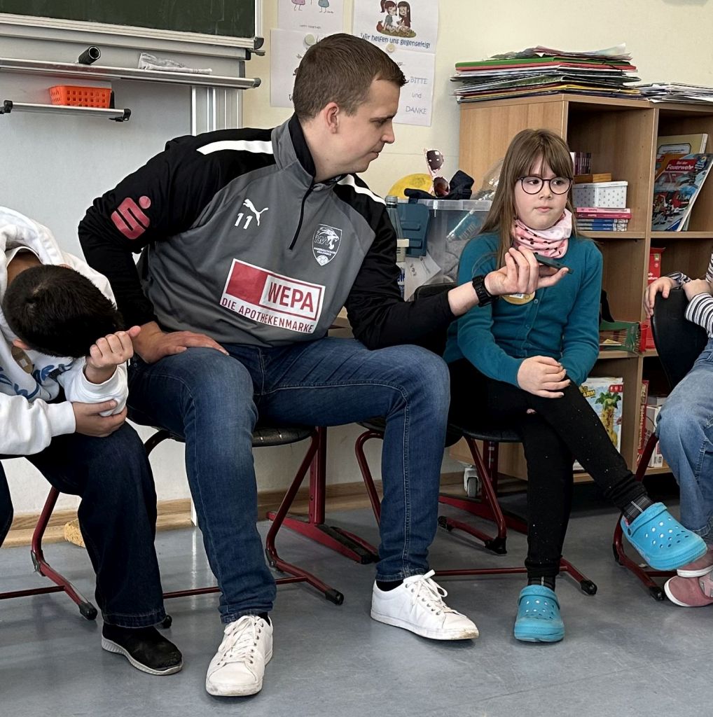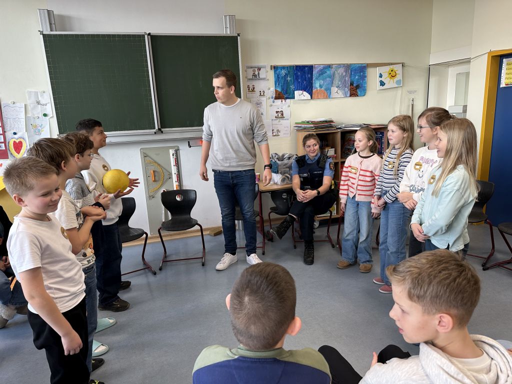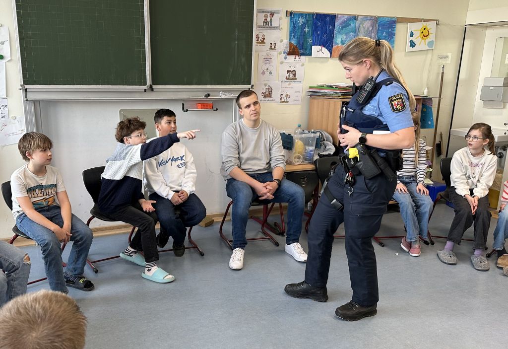 Mit riesigen Schritten kommt der Schulwechsel auf unsere Viertklässler zu. Da heißt es, sich gut vorzubereiten und das nicht nur in Deutsch und Mathe. Deshalb hatten wir heute Besuch von zwei Polizisten der Polizei Montabaur. Die beiden haben mit den Kindern der Klassen 4d und 4a jeweils zwei Stunden lang besprochen, wie sie sich zum Beispiel auf ihrem neuen Schulweg oder auch in anderen kritischen Situationen gut schützen können. In Rollenspielen wurden verschiedene Beispiele geprobt, in denen die Kinder von fremden (in diesem Falle) Männern angesprochen werden. Gemeinsam wurde besprochen, wie die Kinder reagiert haben, was sie gut gemacht haben und was sie noch verbessern können. Es ging um das Heranlocken von Kindern an ein Auto, darum, wie man sich verhält, wenn man auf dem Schulweg verfolgt wird oder wenn auf dem Spielplatz plötzlich ein Erwachsener mitspielen möchte. Bei wem kann man sich Hilfe holen oder wohin kann man gehen, um sicher zu sein? Und wie verhält man sich als Kind, wenn man allein zu Hause ist und es an der Tür klingelt? Hier waren die Kinder schon ziemlich gut vorbereitet und hatten viele passende Antworten parat, um die Tür nicht öffnen zu müssen.