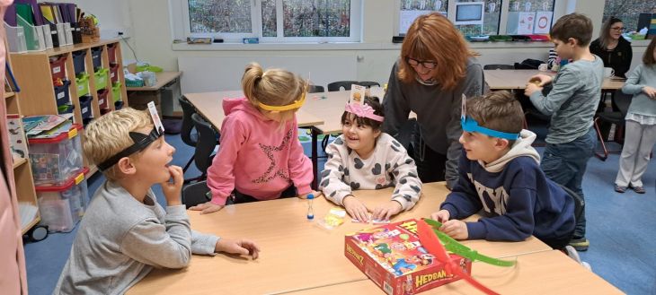 Am 14.11.23 trafen sich 44 Kinder und Eltern in unserer Klasse. Wir Kinder brachten die Gesellschaftsspiele mit, unsere Eltern Getränke, Kekse, Knabbereien und Kuchen. Außerdem hatten wir eine kleine Vorführung unseres „Cup song“ vorbereitet, die wir unseren Eltern stolz im Foyer präsentierten.