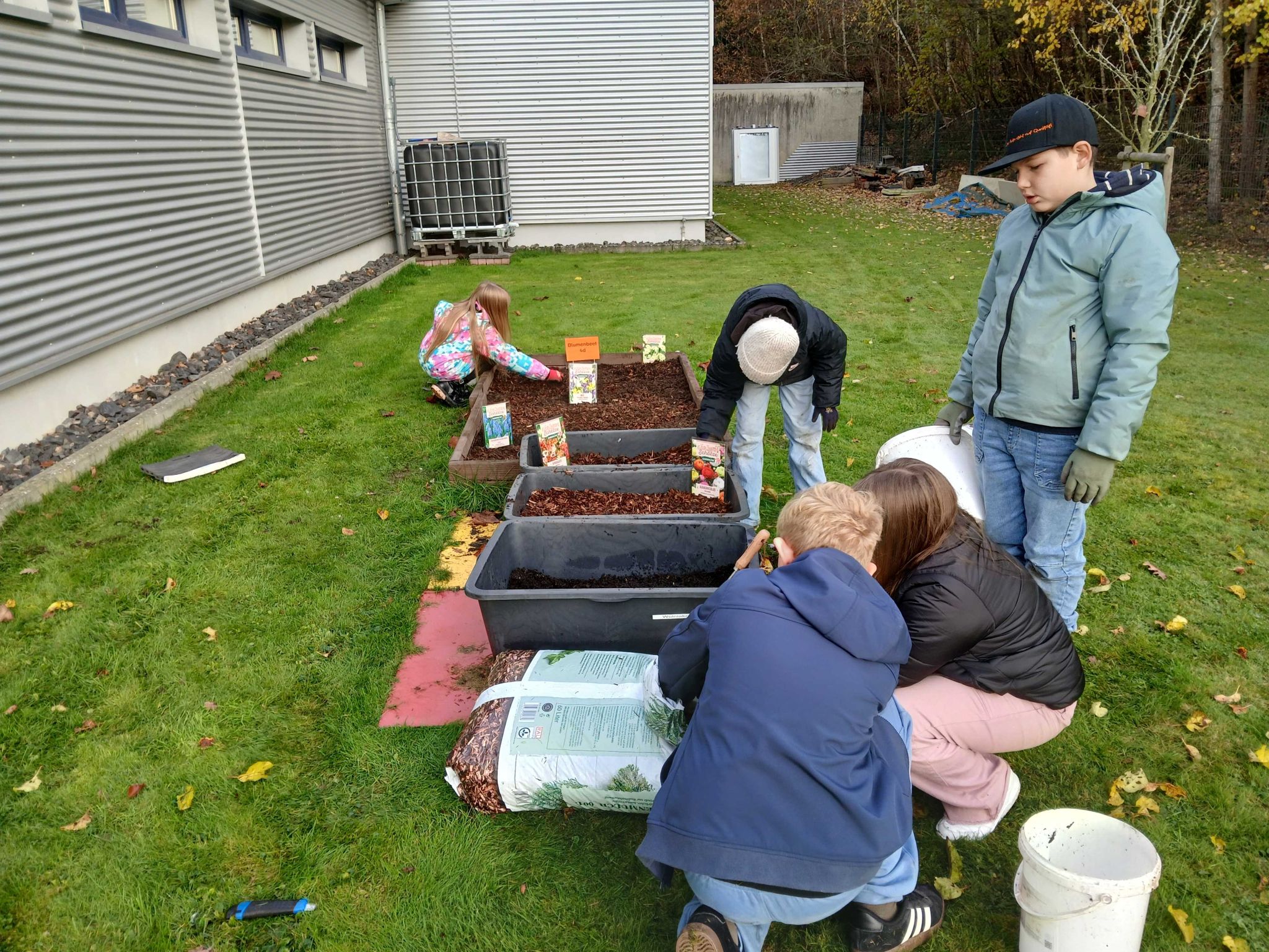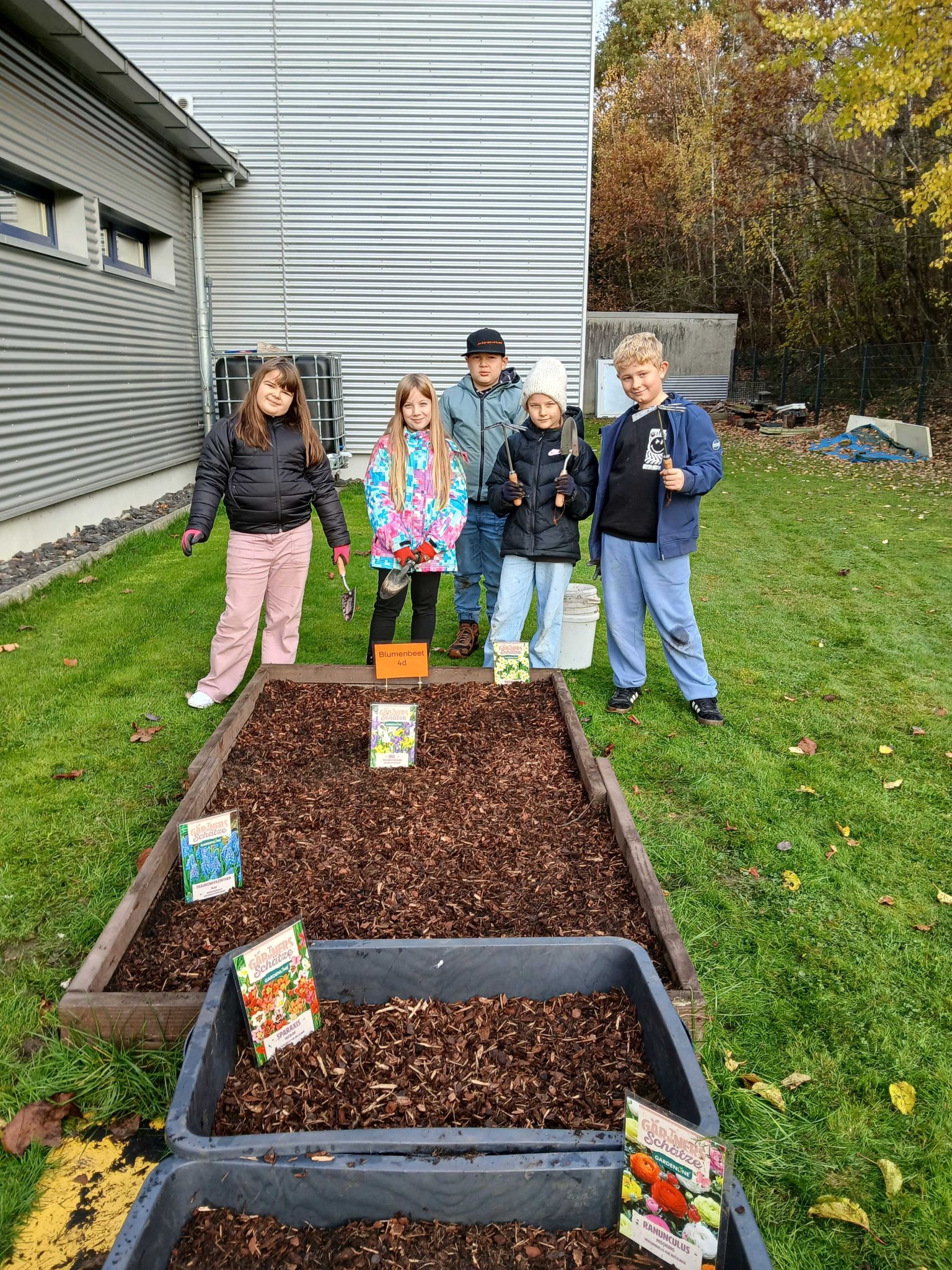 Eine Delegation aus „Zwiebelsetz-Spezialisten“ aus unserer 4d setzte am vergangenen Donnerstag, dem 13.11.25, eine Auswahl von Blumenzwiebeln in unsere Beete: Narzissen, Traubenhyazinthen, Ranunculus, Sparaxis und Iris. Wir hoffen, dass von März bis Juni eine bunte Blumenpracht unseren Schulgarten verschönert 😊