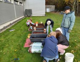 Klasse 4d setzt Blumenzwiebeln